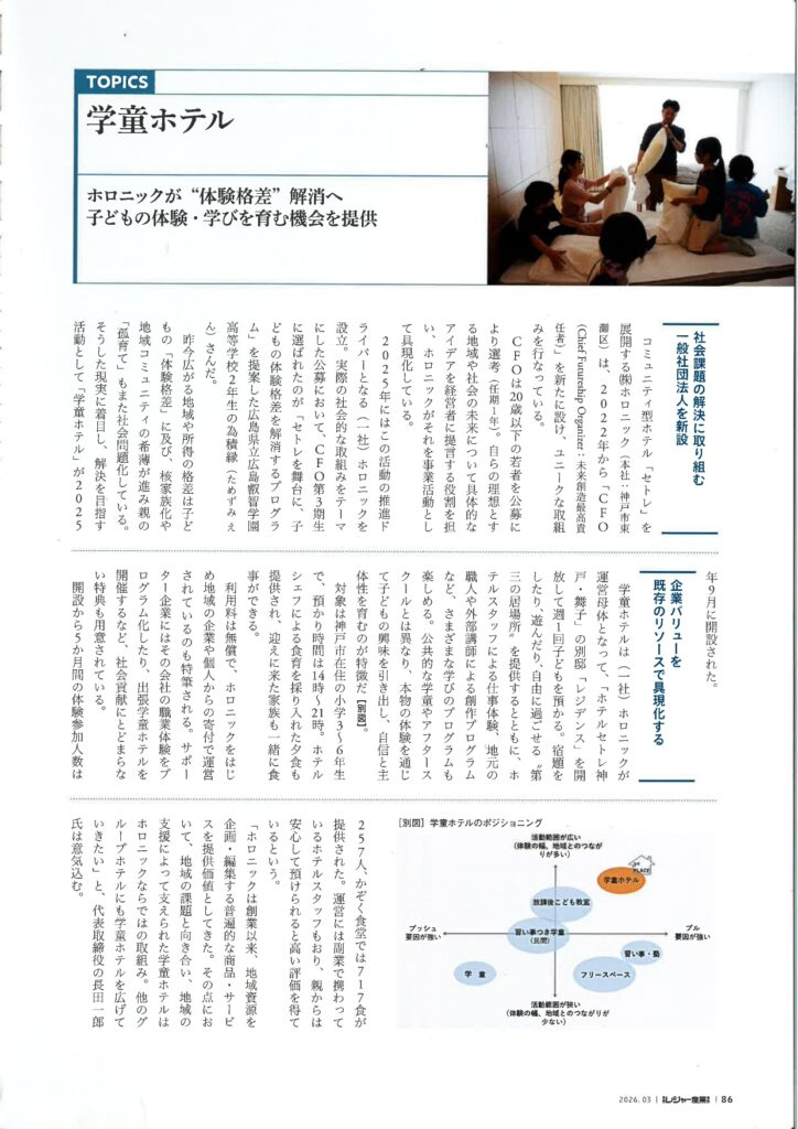 2026年3月号『月刊レジャー産業資料』で学童ホテルの取組みをご紹介いただきました
